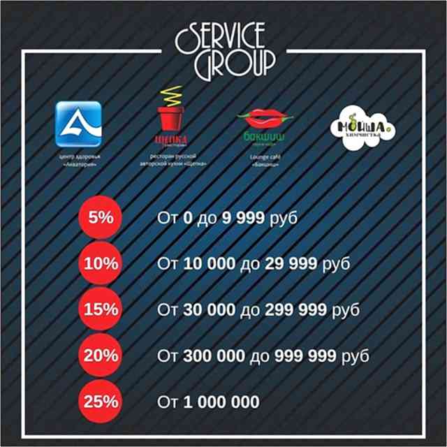 Дорогие гости! Представляем бонусную систему. Градация бонусов действует для всех гостей заведений Service Group. Привязка идет к номеру телефона гостя. В момент оплаты программа "Плазиус" будет Pin Up накопленную сумму чеков гостя за весь период работы заведений и присваивать соответствующий бонус.